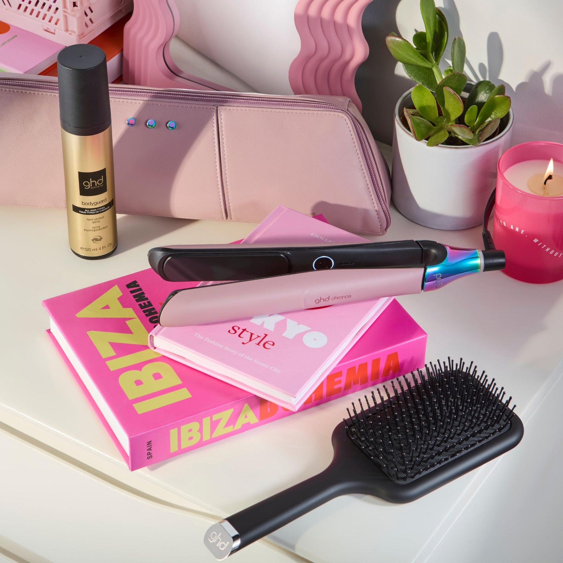 Confiez votre plus beau coiffage au lisseur ghd Chronos. Un outil professionnel à la hauteur de vos attentes et un design unique qui reflète votre individualité. Le meilleur lisseur ghd est maintenant disponible dans une édition limitée rose fantastique aux nuances irisées, associé à une pochette et tapis thermorésistants assortis. Craquez pour la collection ghd futurescape, la fusion entre la performance et la beauté pour des coiffages facilités et des cheveux sublimés.