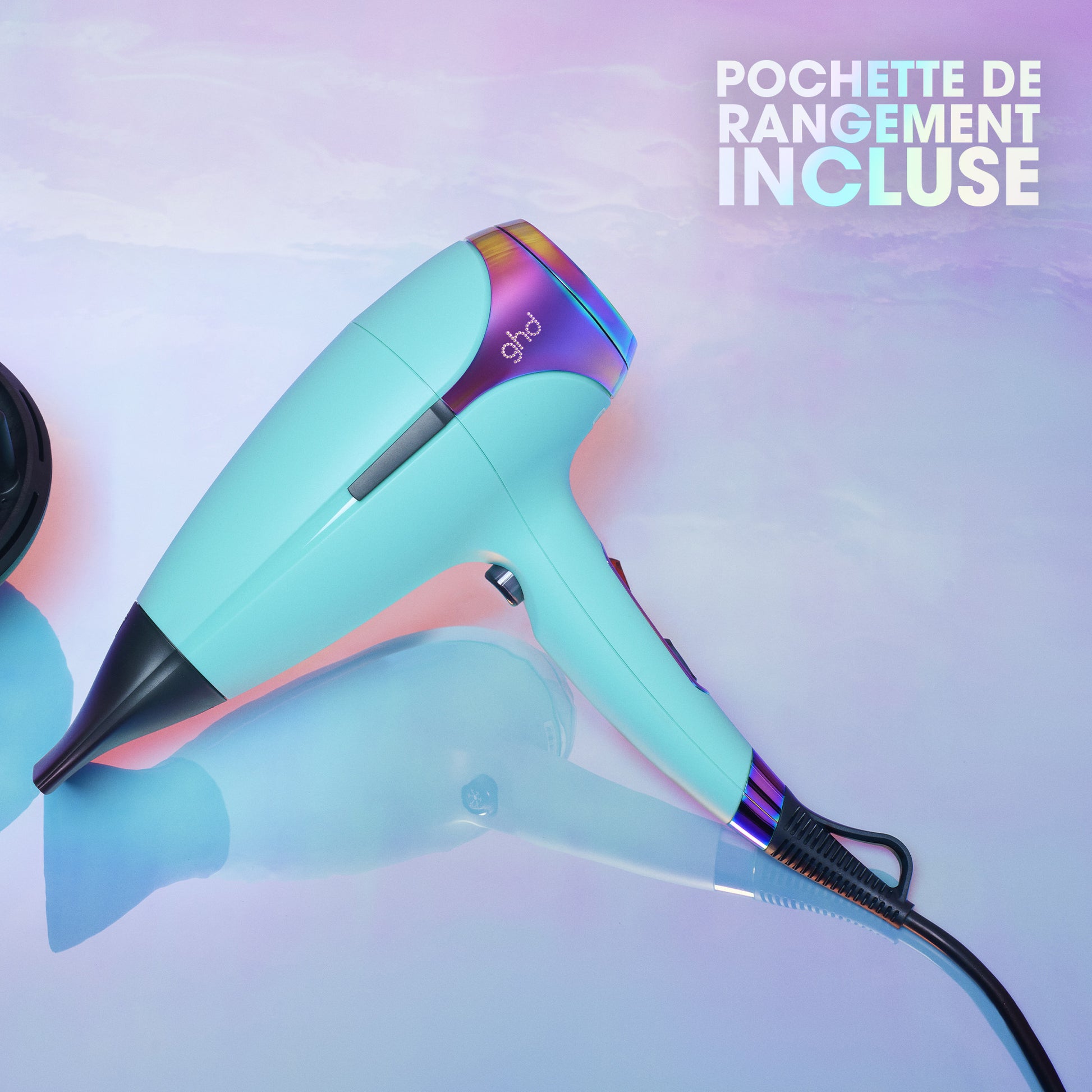 Confiez votre plus beau coiffage au sèche-cheveux ghd Helios. Un outil professionnel à la hauteur de vos attentes et un design unique qui reflète votre individualité. Le sèche-cheveux d'excellence ghd est maintenant disponible dans une édition limitée au coloris bleu mystique et nuances irisées, associé à une pochette de rangement assortie. Craquez pour la collection ghd futurescape, la fusion entre la performance et la beauté pour des coiffages facilités et des cheveux sublimés.